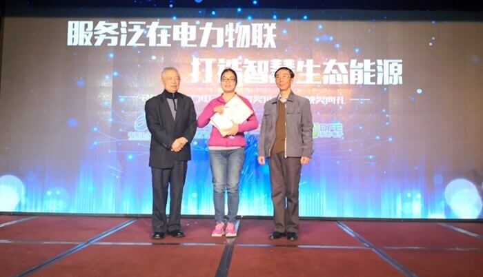 国务院三峡办技术与装备部李秦副司长与华南理工大学陈皓勇教授为三等奖获奖代表颁奖